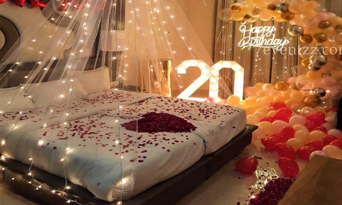 Read MoreHardik Flower Decoration offer romantic room decoration to give surprises for him/her on Wedding Anniversary romantic room decoration or Birthday romantic bedroom decoration, first night.